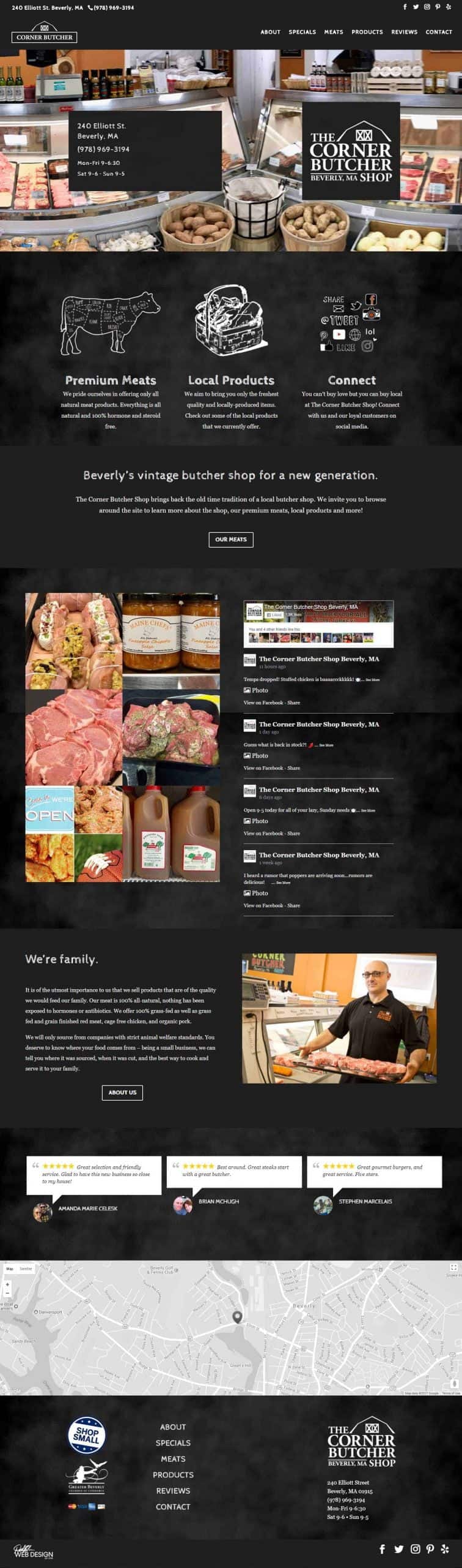 I recently finished up a refresh of The Corner Butcher Shop Beverly, MA WordPress website. A few components were outdated including a theme, so we took this opportunity to do a redesign on Divi. I added to the design a new integration with Instagram.