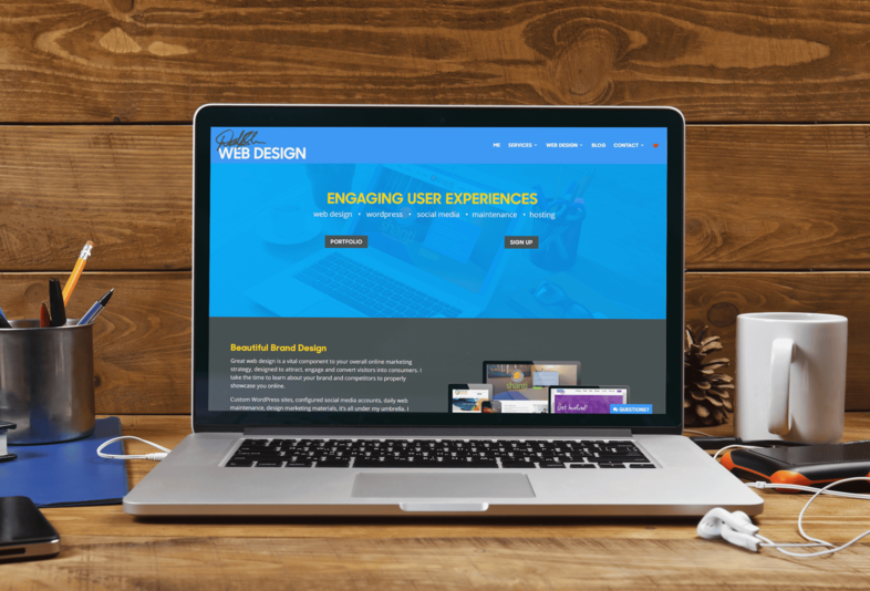 I’m happy to announce today marks the 5th redesign of https://kaleidaweb.com I’ve had since WordPress was released in 2003. The last two designs have featured a red accent, and this time I changed it up to go with bold colors including a cheerful blue, yellow, some red and dark gray. I wanted to showcase off some new design skills, so I added a typewriter feature to the header and an interactive portfolio that has scroll-able devices.