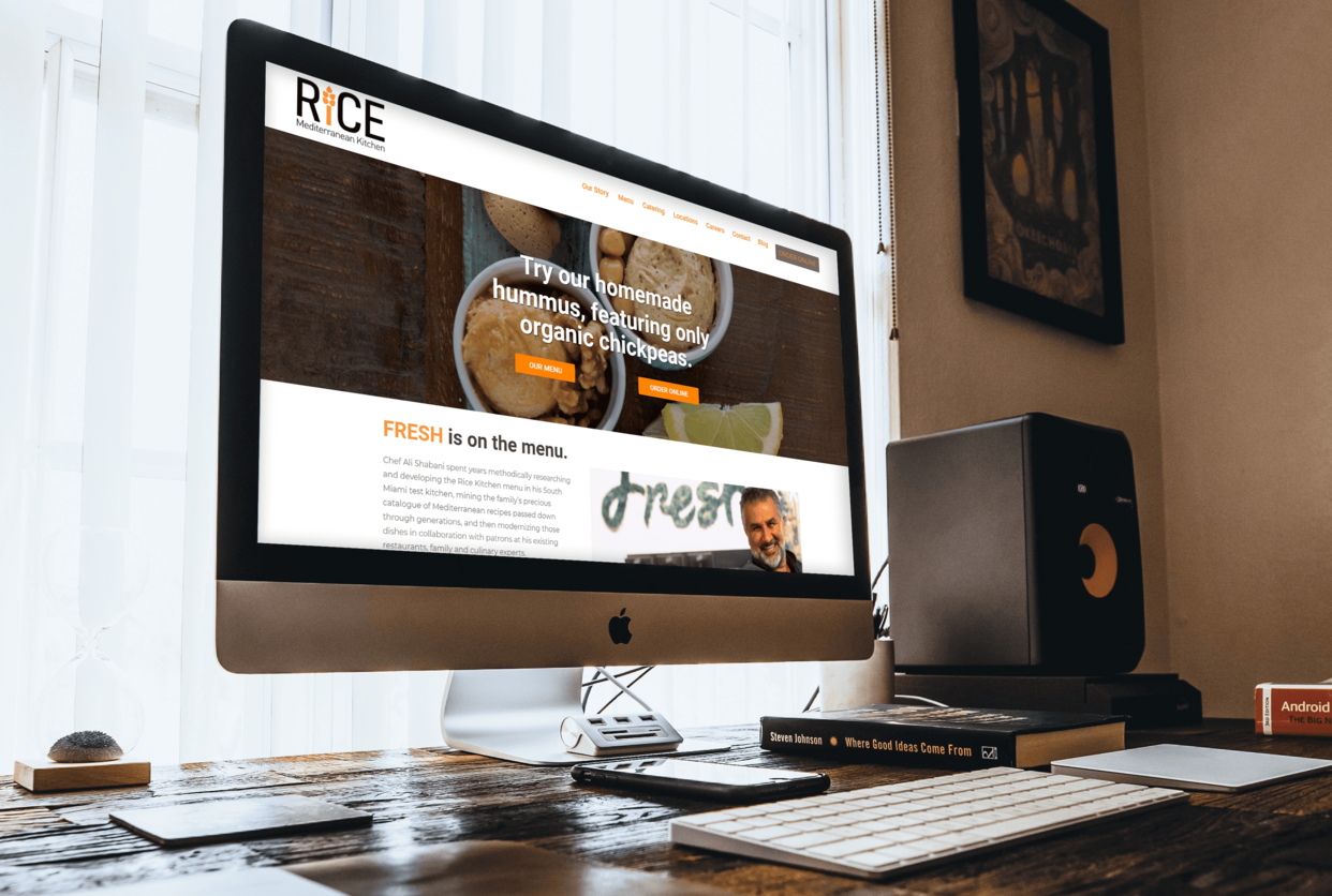 We are currently working on the RICE Kitchen restaurant chain WordPress redesign. They came to us with a small tile homepage that wasn’t on-brand and didn’t include social media or dynamic content.
